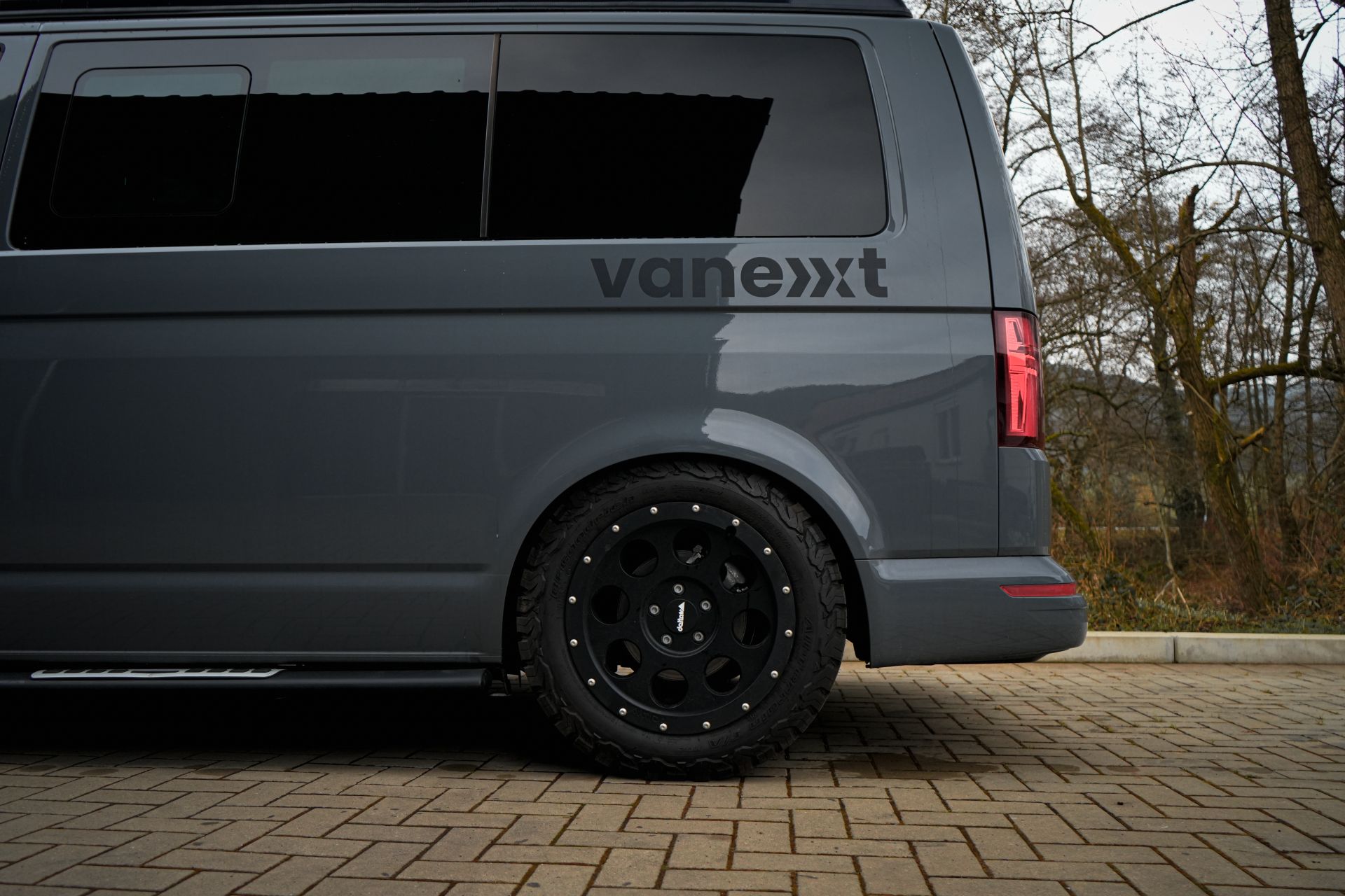 In diesen VW T6.1 haben wir ein STREETEC 'offroad & camping" Luftfedersystem in Verbindung mit der STREETEC autoleveling verbaut. Das komplette Lufterzeugungskit samt Kompressor und Tank wurde mittels STREETEC autoleveling Box unterhalb des Fahrzeugs montiert und nimmt somit keinen Platz im Innenraum weg. Das Bedienelement der autoleveling Steuerung wurde mit einem Fahrzeugspezifischen Halter in dem Getränkehalter auf dem Armaturenbrett befestigt, dies ermöglicht eine einfache und unkomplizierte Steuerung direkt vom Fahrersitz. Ebenfalls montiert wurden Loder AT#1 Offroad Reifen auf Delta 4x4 Klassik B Felgen. Abgerundet ist die Optik durch den Delta 4x4 Frontbügel, die Seitenschweller und die PIAA Zusatzscheinwerfer.